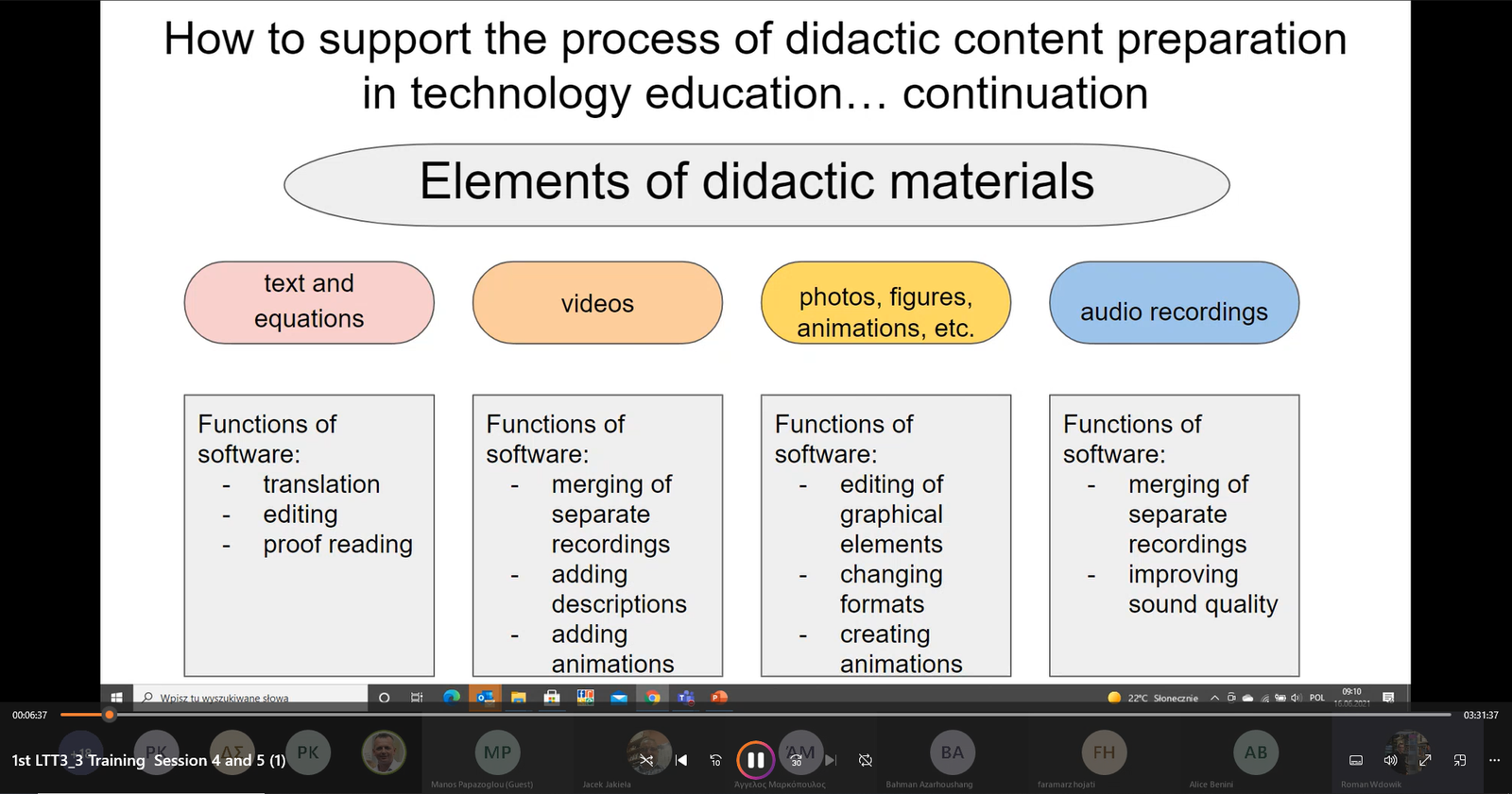 - training on the preparation of content for the aims of e-learning materials and lectures including implementation of results of R&D (content editing, adjusting, developing, sharing with the use of software digital tools) - (1 day training focused on practical exercises at the PC).